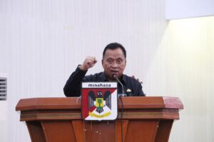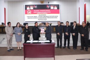 MINAHASA-Bupati Minahasa Bapak. Robby Dondokambey, S.Si, MAP. Bersama Wakil Bupati Minahasa Ibu. Vanda Sarundajang, SS. Mengikuti Rapat Paripurna DPRD Dalam Rangka Pembicaraan Tingkat I Terhadap Rancangan Peraturan Daerah Kabupaten Minahasa Tentang RPJMD Kabupaten Minahasa Tahun 2025-2029. Dipimpin Oleh Ketua DPRD Kab.Minahasa Drs.Robby Longkutoy,MM. Didampingi Wakil Ketua Putri Pontororing, SE. Dan Adrie Kamasi, SH, MH. Bertempat di Ruang Sidang DPRD Kab Minahasa…(Victor)