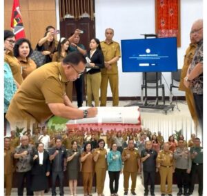 Bupati Minahasa Bapak. Robby Dondokambey, S.Si, MAP. Membuka kegiatan Musyawarah Perencanaan Pembangunan (Musrenbang) RPJMD Kab. Minahasa Tahun 2025-2029 Dilanjutkan Penandatanganan Berita Acara Kesepakatan Hasil Musrenbang RPJMD Kab.Minahasa Tahun 2025-2029. Bertempat di Ruang Sidang Kantor Bupati Minahasa